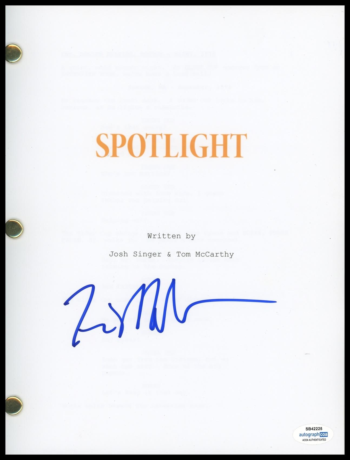 TOM MCCARTHY “SPOTLIGHT” DIRECTOR AUTOGRAPH SIGNED FULL SCRIPT SCREENPLAY ACOA COLLECTIBLE MEMORABILIA