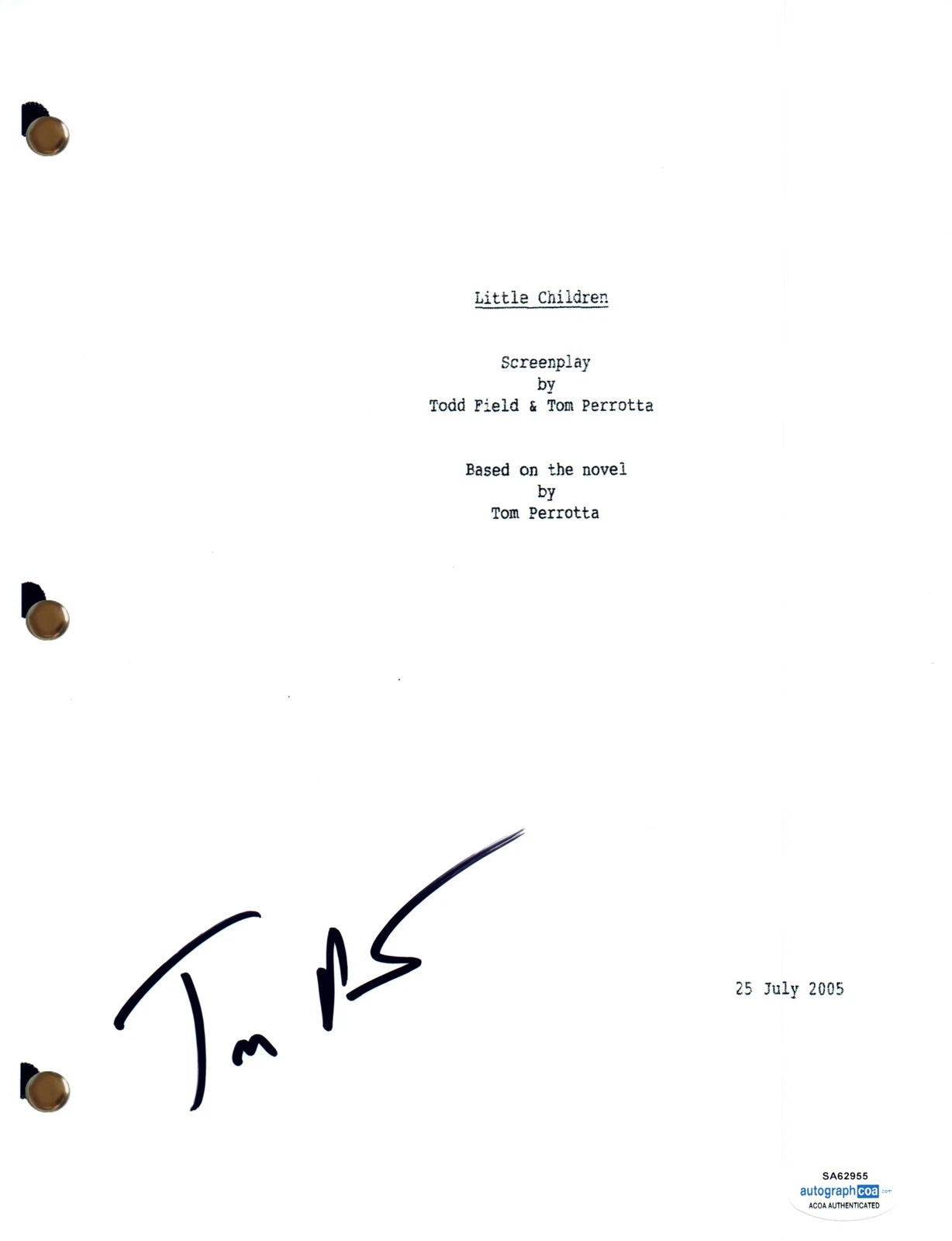 TOM PERROTTA SIGNED AUTOGRAPH LITTLE CHILDREN MOVIE SCRIPT SCREENPLAY ACOA COA COLLECTIBLE MEMORABILIA