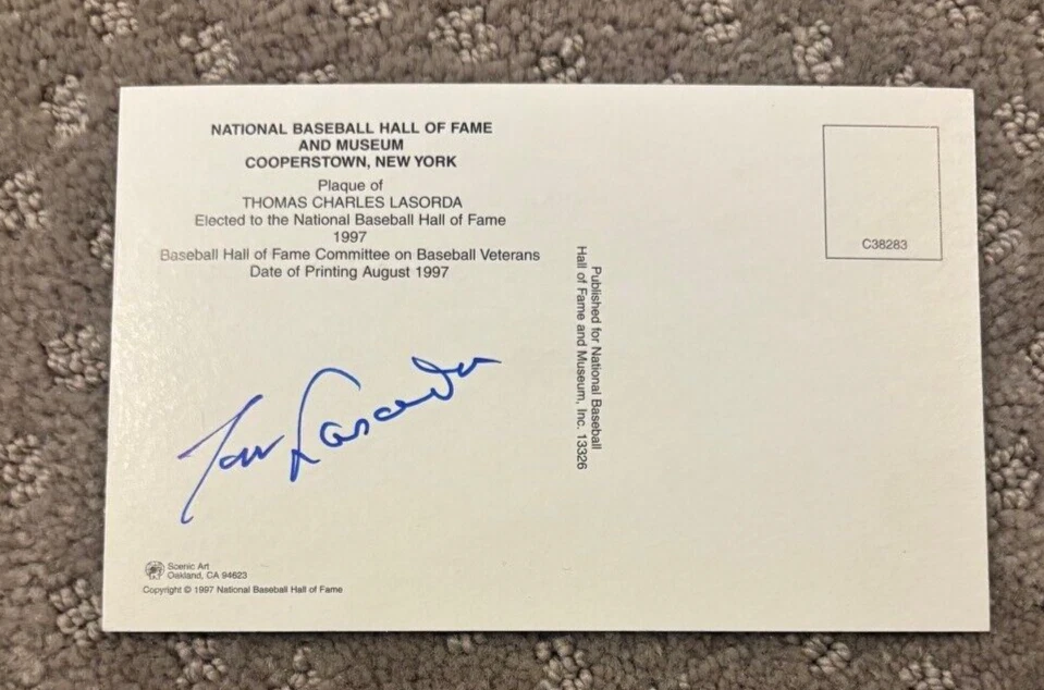 TOMMY LASORDA SIGNED GOLD HALL OF FAME PLAQUE POSTCARD AUTOGRAPHED LA DODGERS COLLECTIBLE MEMORABILIA