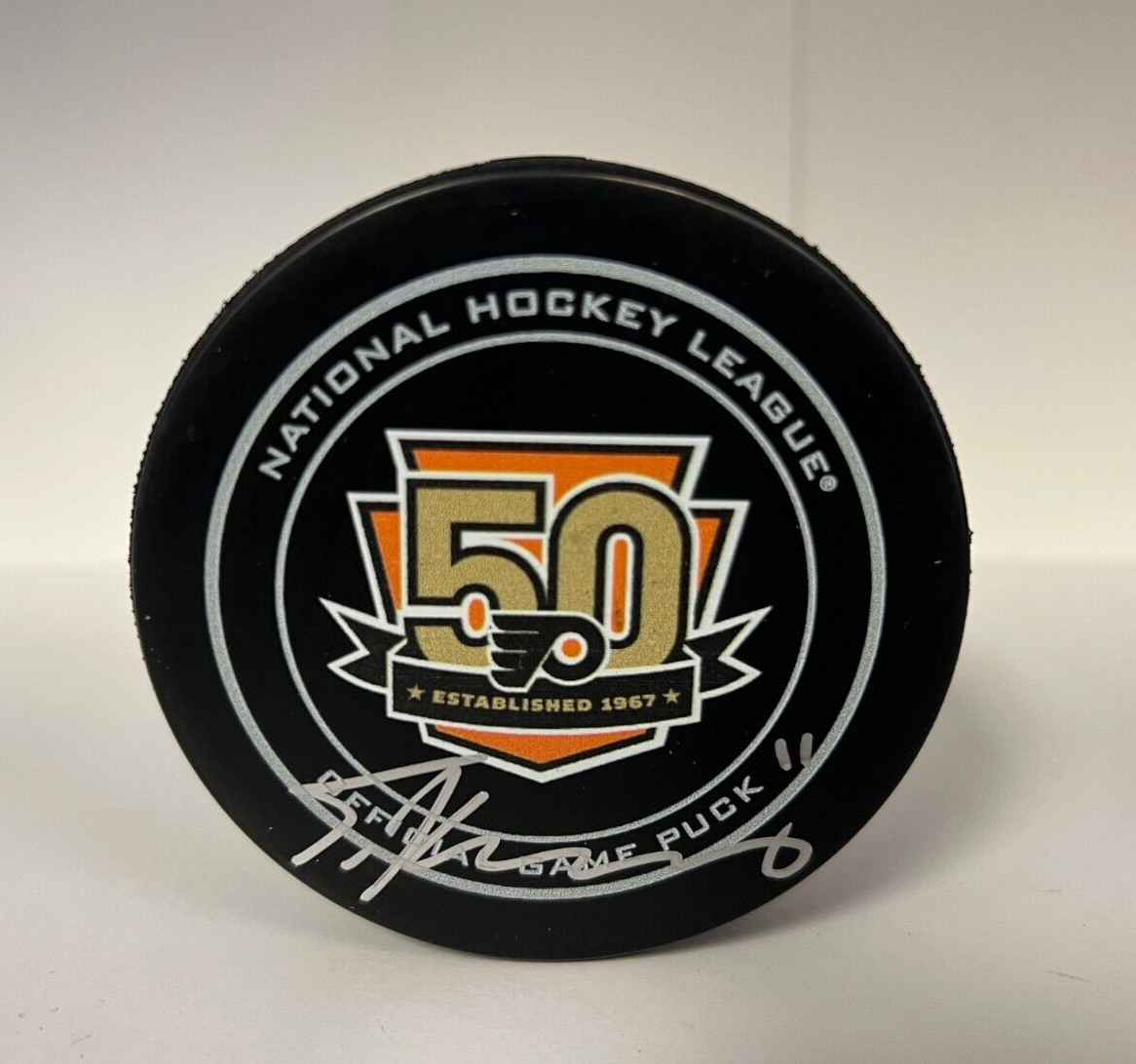 TRAVIS KONECNY FLYERS 50TH ANNIVERSARY SIGNED AUTOGRAPHED HOCKEY PUCK JSA AUTH COLLECTIBLE MEMORABILIA