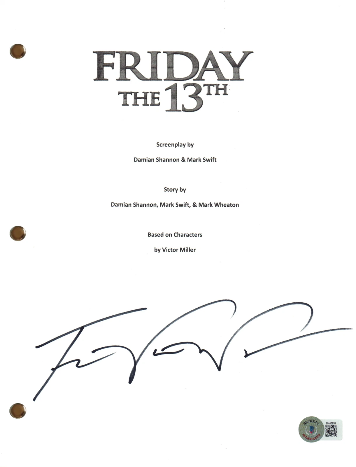 TRAVIS VAN WINKLE SIGNED FRIDAY THE 13TH 2009 MOVIE SCRIPT SCREENPLAY BAS COA COLLECTIBLE MEMORABILIA