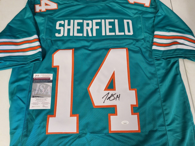 TRENT SHERFIELD #14 MIAMI SIGNED AUTOGRAPHED CUSTOM TEAL JERSEY SIZE XL JSA COA COLLECTIBLE MEMORABILIA