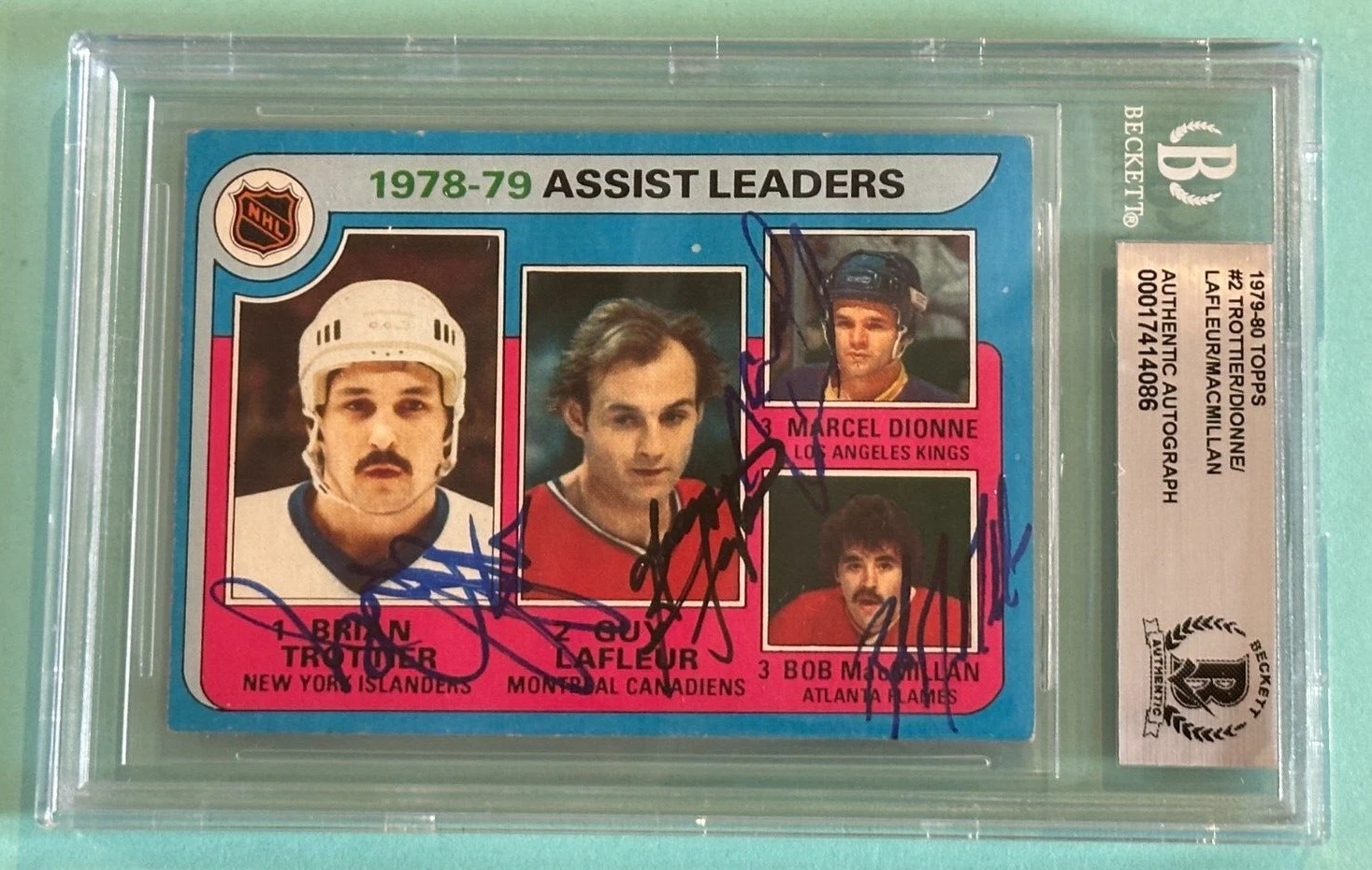 TROTTIER, LAFLEUR, DIONNE & MACMILLAN SIGNED 1979-80 TOPPS CARD #2 BAS COLLECTIBLE MEMORABILIA