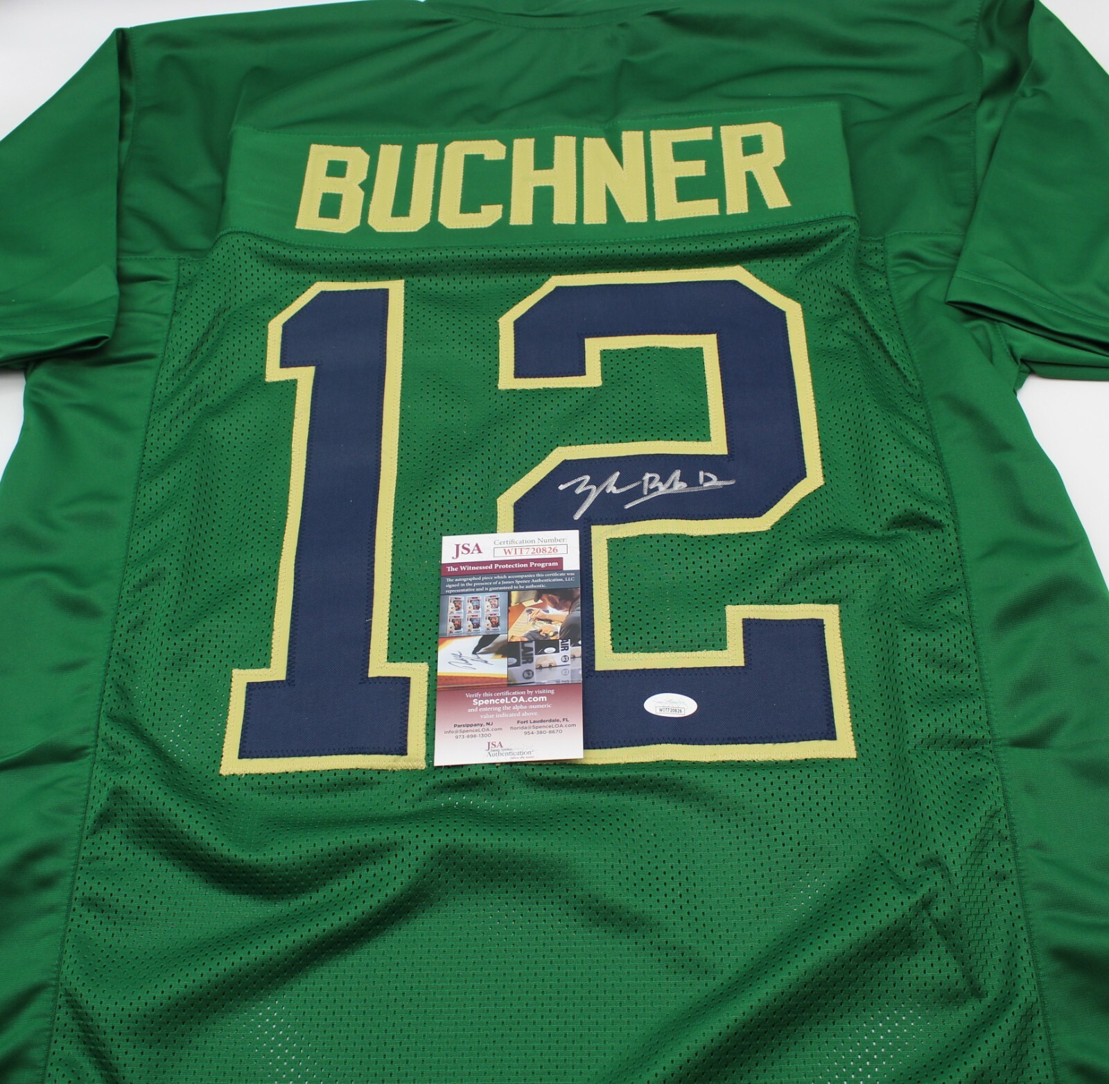 TYLER BUCHNER SIGNED CUSTOM NOTRE DAME GREEN JERSEY W/JSA COA WITNESS #1 COLLECTIBLE MEMORABILIA