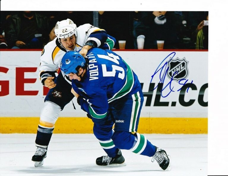 VANCOUVER CANUCKS AARON VOLPATTI SIGNED FIGHT VS NASHVILLE 8X10 COLLECTIBLE MEMORABILIA