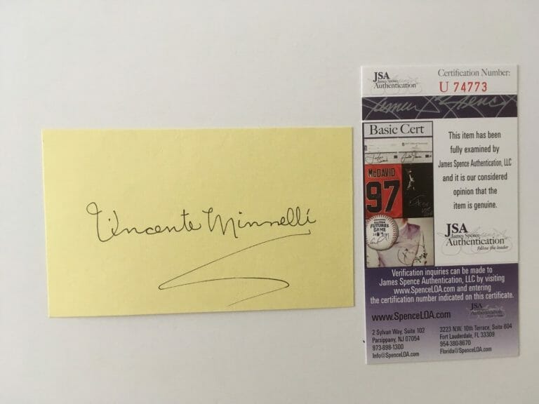 VINCENTE MINNELLI SIGNED AUTOGRAPHED 3×5 CARD JSA CERTIFIED COLLECTIBLE MEMORABILIA