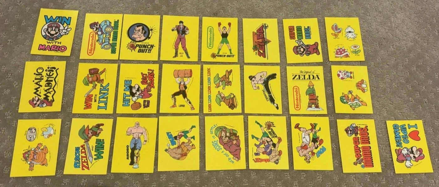 VINTAGE 1989 TOPPS NINTENDO STICKER CARDS LOT 25 GREAT CONDITION ZELDA MARIO COLLECTIBLE MEMORABILIA