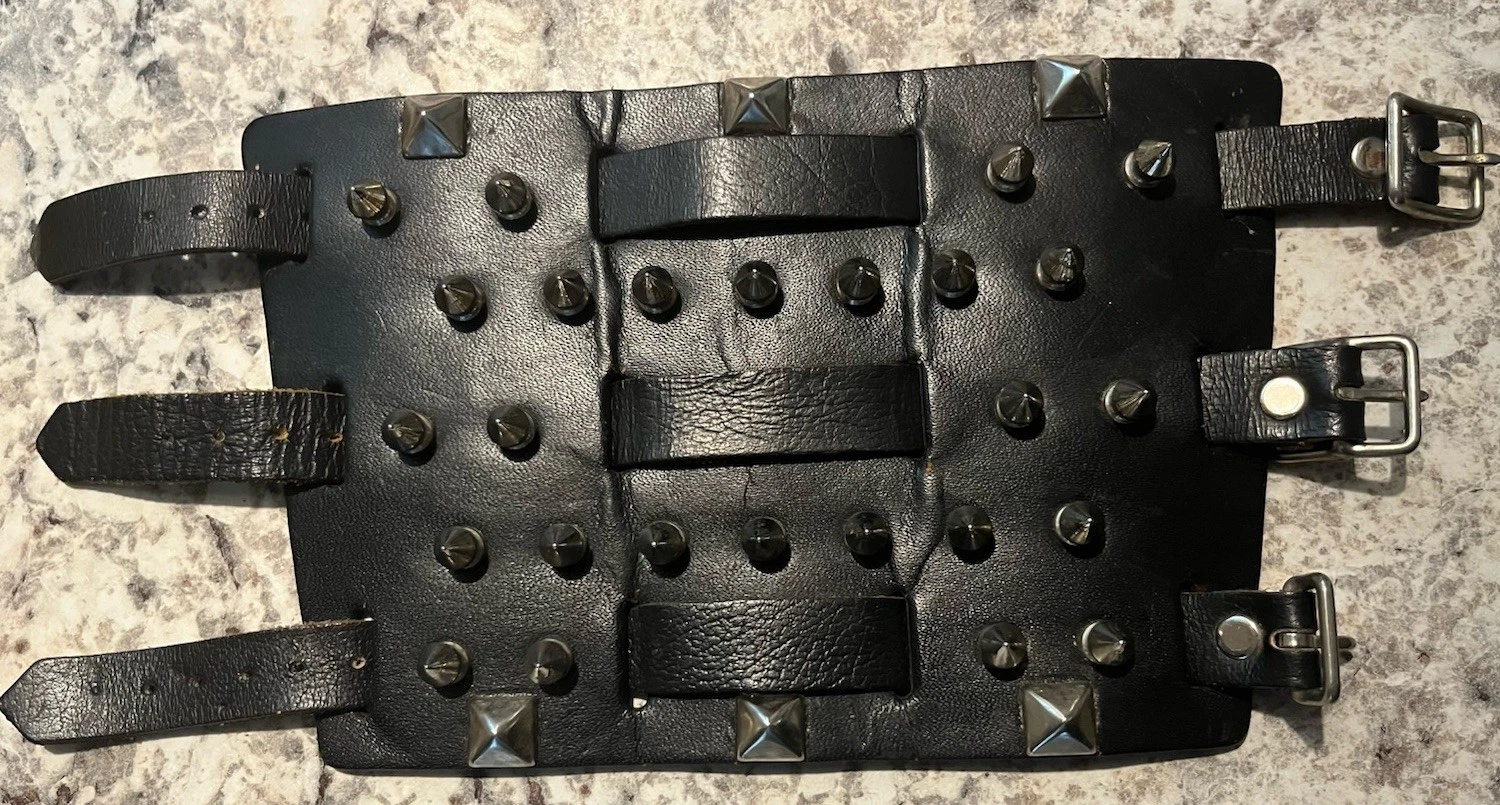VINTAGE LEATHER SPIKE STUDDED WRISTBAND CUFF PUNK ROCK HEAVY METAL BIKER GOTH COLLECTIBLE MEMORABILIA