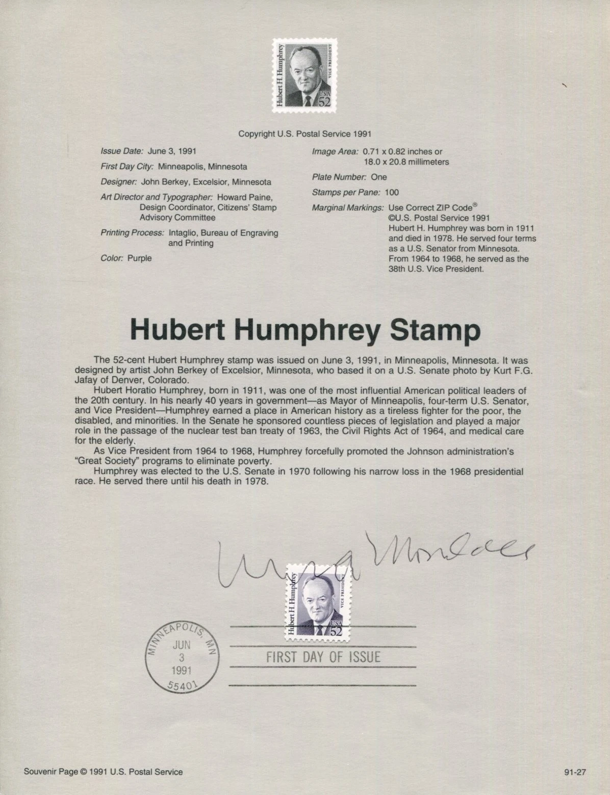 WALTER MONDALE US VICE PRESIDENT SENATOR MINNESOTA SIGNED AUTOGRAPH FDC SHEET COLLECTIBLE MEMORABILIA