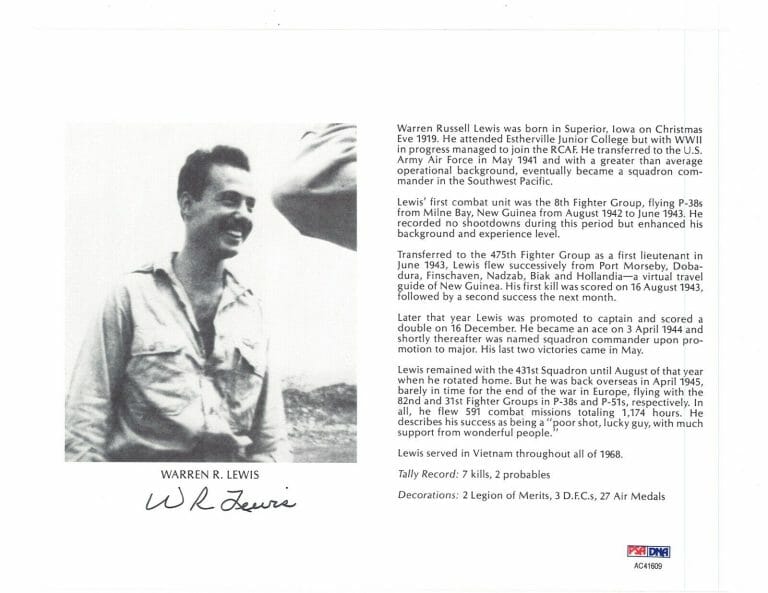 WARREN LEWIS SIGNED 8X10 (D) PSA DNA AC41609 WWII ACE 7 KILLS COLLECTIBLE MEMORABILIA
