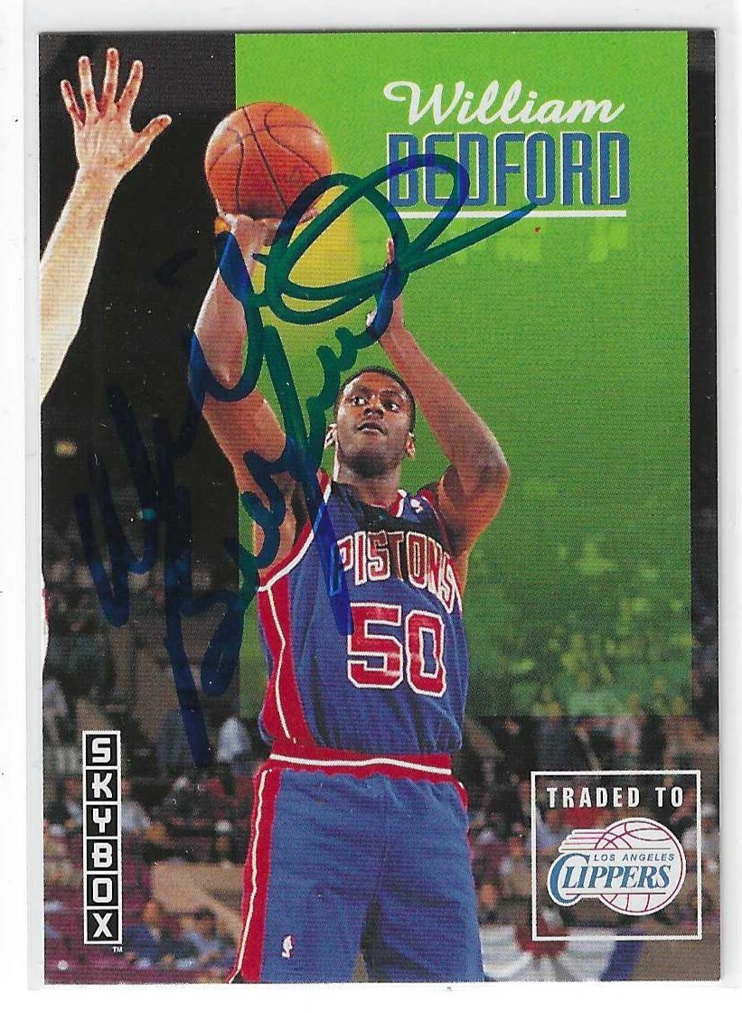 WILLIAM BEDFORD SIGNED 1992/93 SKYBOX CARD #67 DETROIT PISTONS L.A. CLIPPERS COLLECTIBLE MEMORABILIA