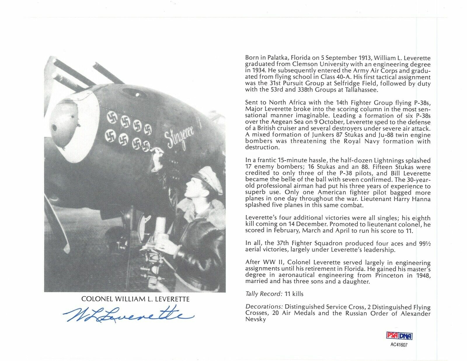 WILLIAM LEVERETTE SIGNED 8X10 PSA DNA (D) AC41607 WWII ACE 11 KILLS COLLECTIBLE MEMORABILIA