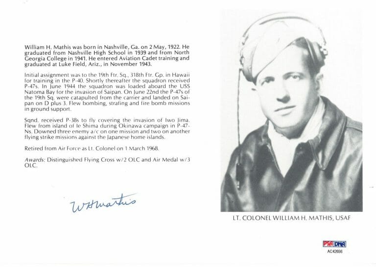 WILLIAM MATHIS SIGNED 8X10 (D) PSA DNA AC42696 WWII ACE 5 KILLS COLLECTIBLE MEMORABILIA