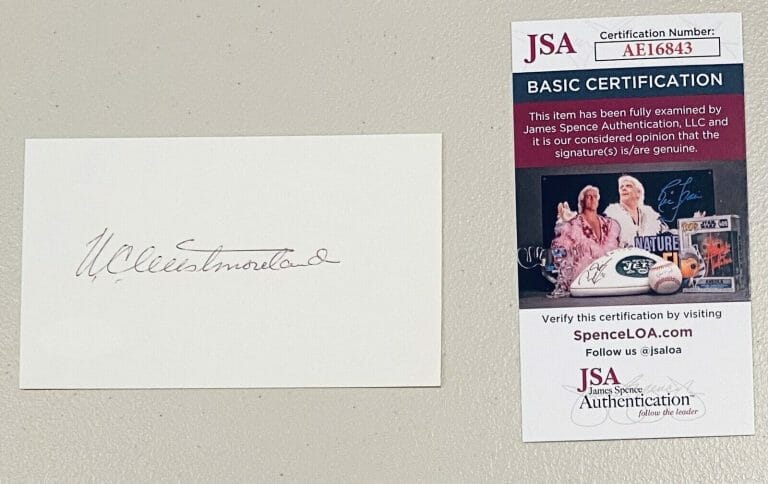 WILLIAM WESTMORELAND SIGNED AUTOGRAPHED 3×5 CARD JSA CERT US ARMY GENERAL COLLECTIBLE MEMORABILIA