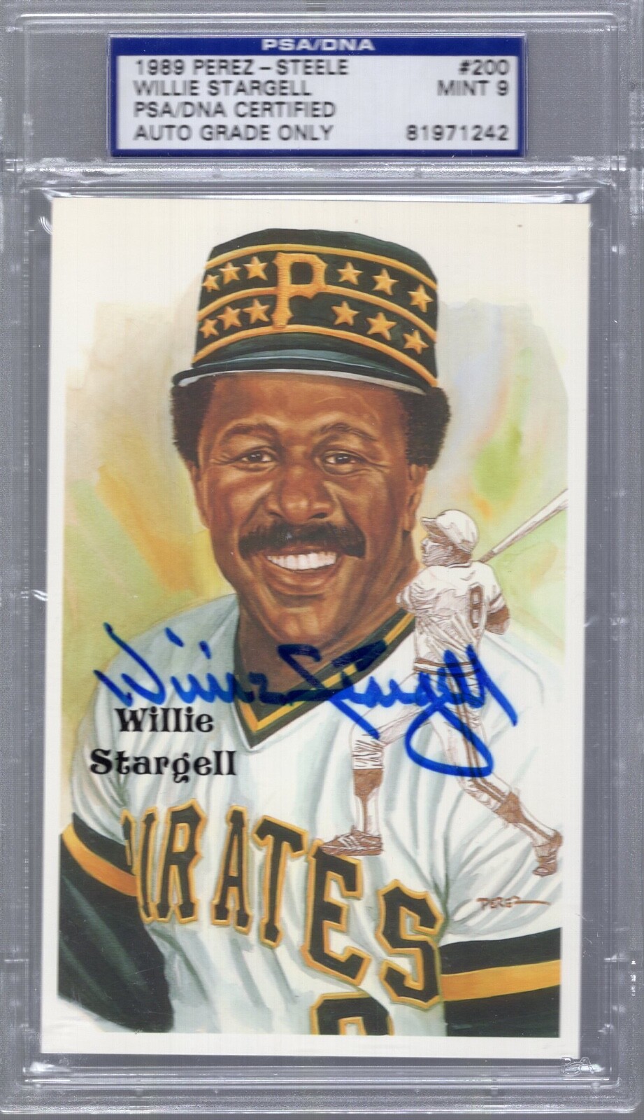 WILLIE STARGELL HAND SIGNED HALL OF FAME PEREZ STEELE CARD MINT 9 PSA SLABBED COLLECTIBLE MEMORABILIA