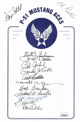WWII P-51 ACES MULTI SIGNED BOOKPLATE JSA AW56170 OLDS GREEN HILL + 10 MORE COLLECTIBLE MEMORABILIA