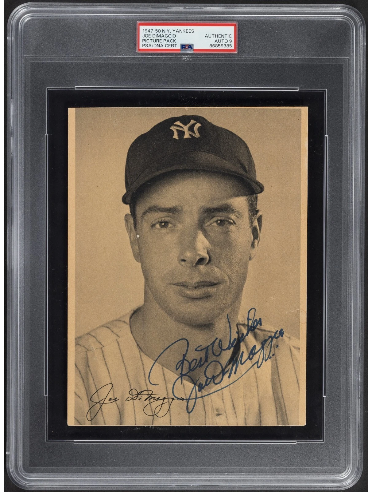 1947 JOE DIMAGGIO SIGNED NEW YORK YANKEES PICTURE PACK PHOTO PSA DNA AUTO 9 MINT COLLECTIBLE MEMORABILIA