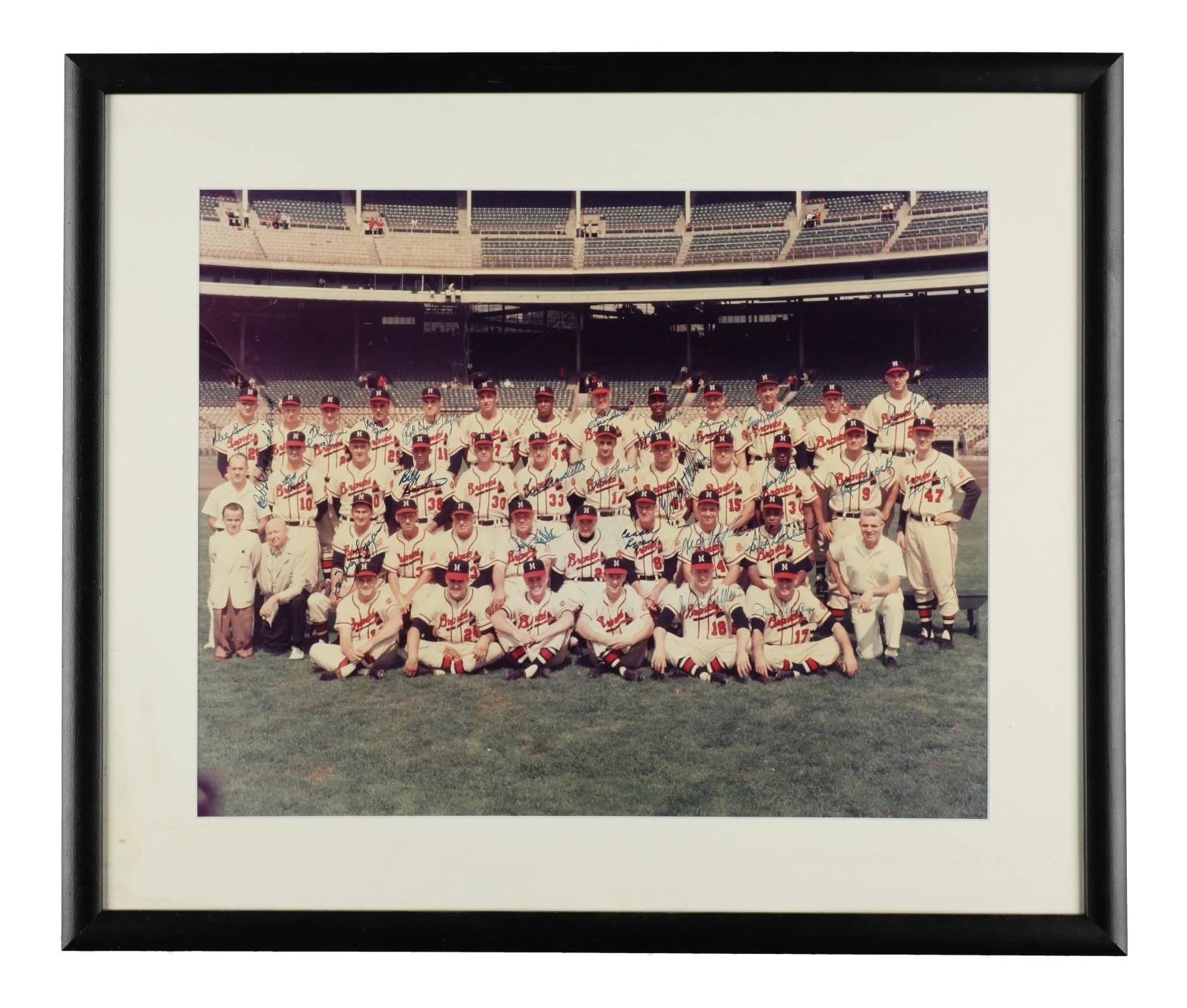 1957 MILWAUKEE BRAVES WORLD SERIES CHAMPS TEAM SIGNED 16×20 PHOTO JSA COA COLLECTIBLE MEMORABILIA