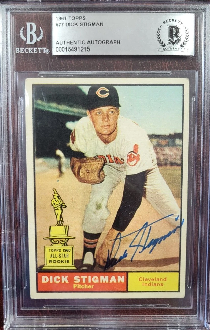 1961 TOPPS DICK STIGMAN INDIANS SIGNED AUTOGRAPH #77 CARD BECKETT AUTHENTIC COLLECTIBLE MEMORABILIA
