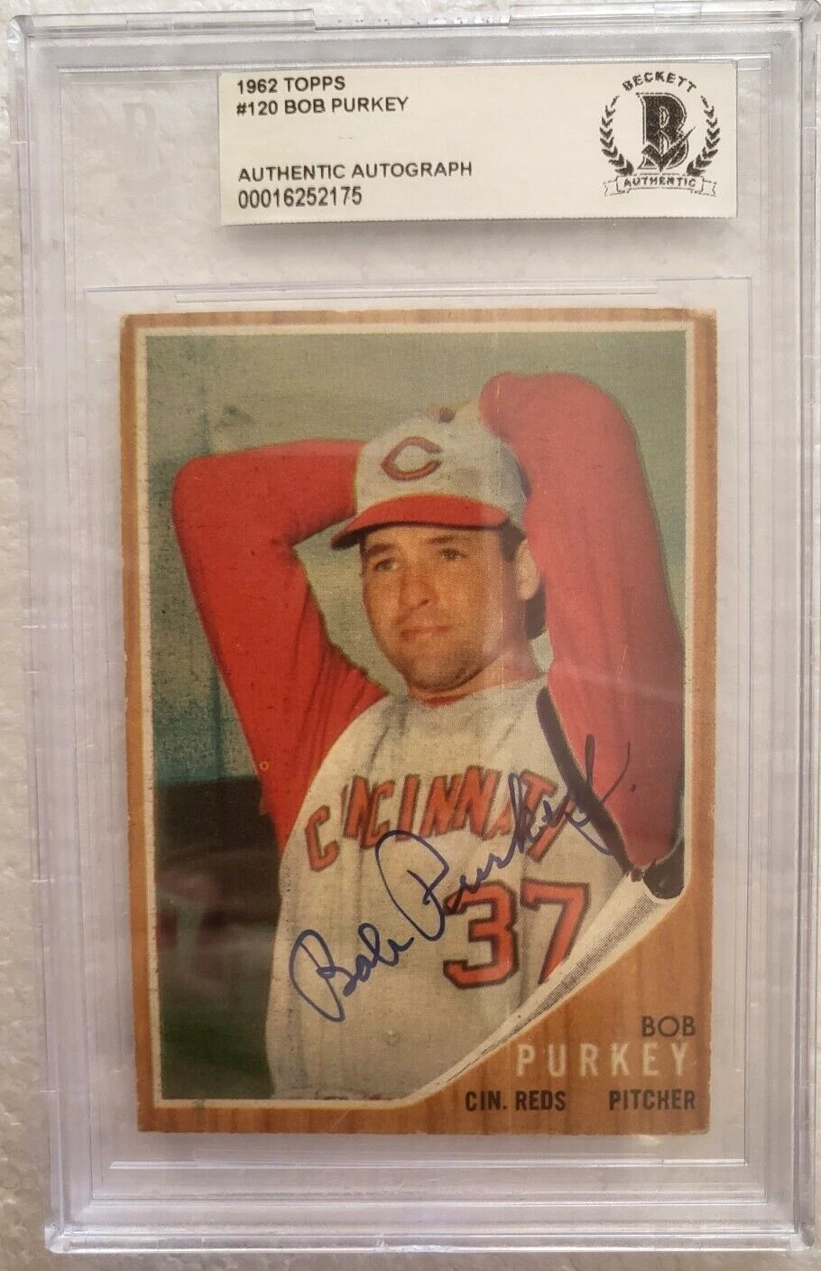 1962 TOPPS BOB PURKEY CINCINNATI REDS SIGNED AUTOGRAPHED #120 CARD BECKETT COLLECTIBLE MEMORABILIA