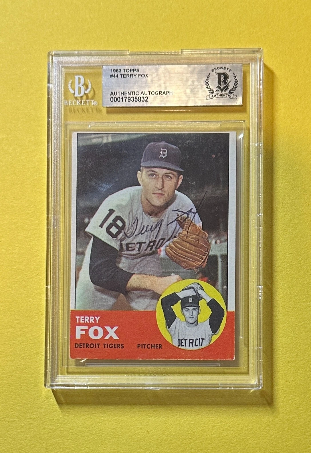 1963 TOPPS TERRY FOX #44 BECKETT AUTHENTIC SIGNED AUTOGRAPH CARD TIGERS COLLECTIBLE MEMORABILIA