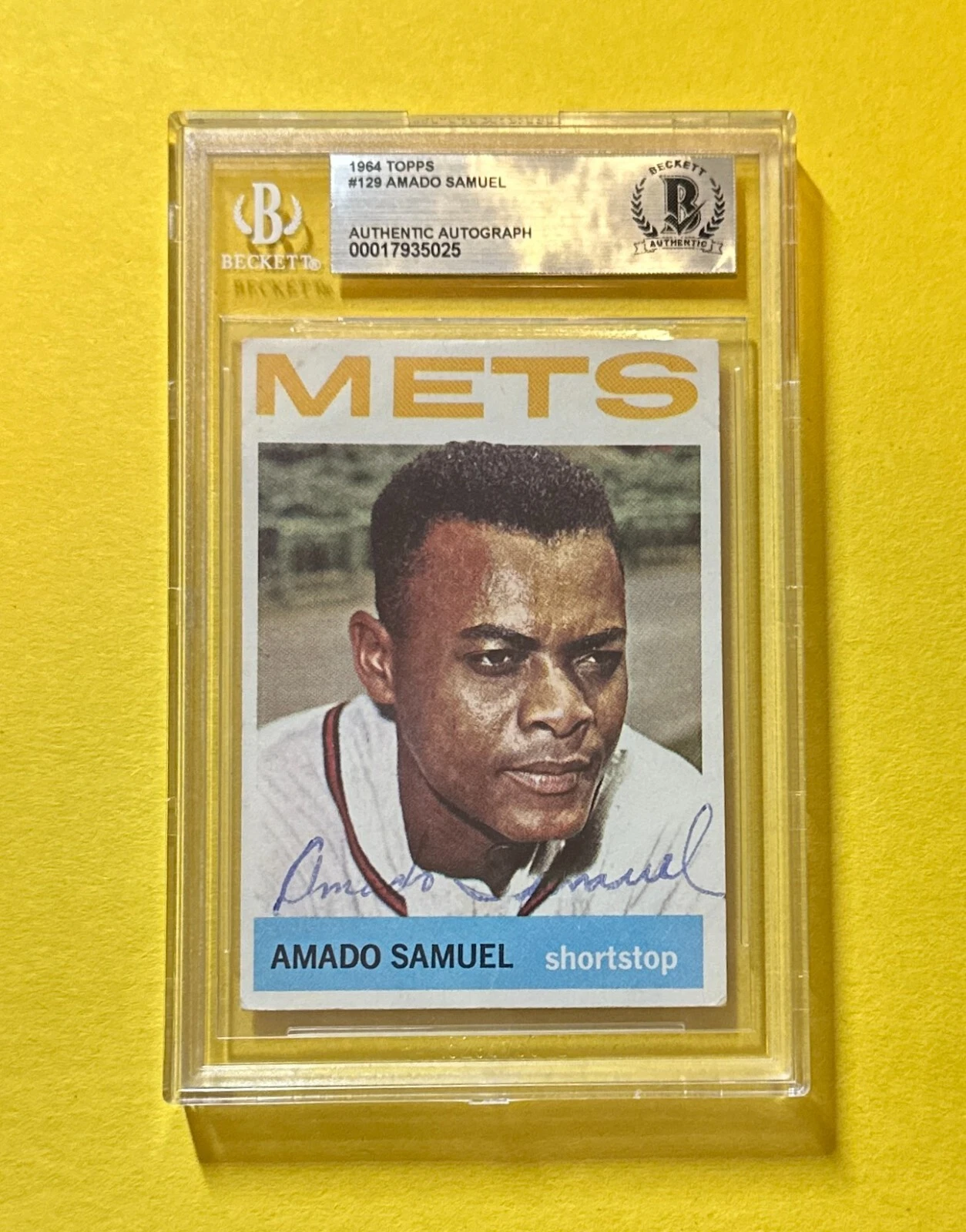 1964 TOPPS AMADO SAMUEL #129 BECKETT AUTHENTIC SIGNED AUTOGRAPHED CARD METS COLLECTIBLE MEMORABILIA