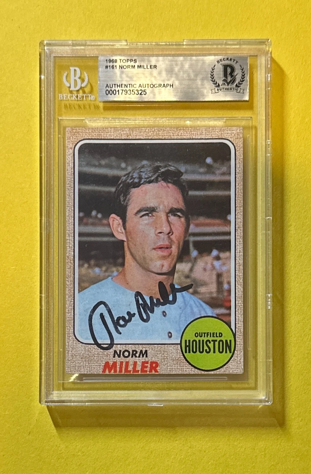 1968 TOPPS NORM MILLER #161 BECKETT AUTHENTIC SIGNED AUTOGRAPHED CARD HOUSTON COLLECTIBLE MEMORABILIA