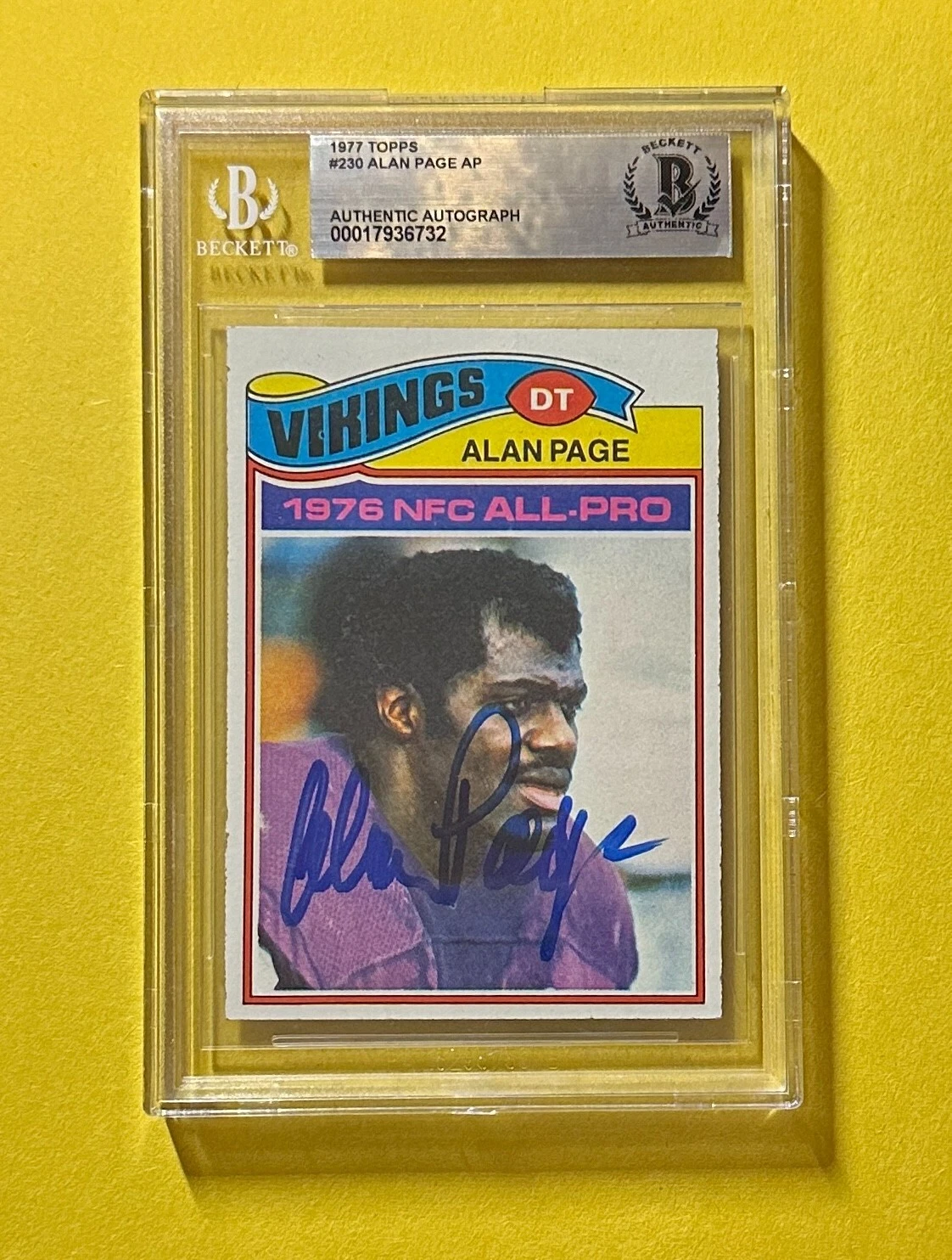 1977 TOPPS ALAN PAGE AP BECKETT AUTHENTIC SIGNED AUTOGRAPHED CARD #230 VIKINGS COLLECTIBLE MEMORABILIA