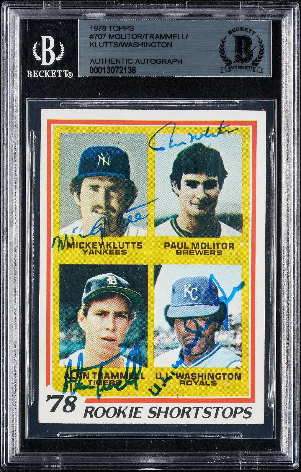 1978 TOPPS PAUL MOLITOR ALAN TRAMMELL RC #707 SIGNED BY ALL 4 PLAYERS BGS COLLECTIBLE MEMORABILIA
