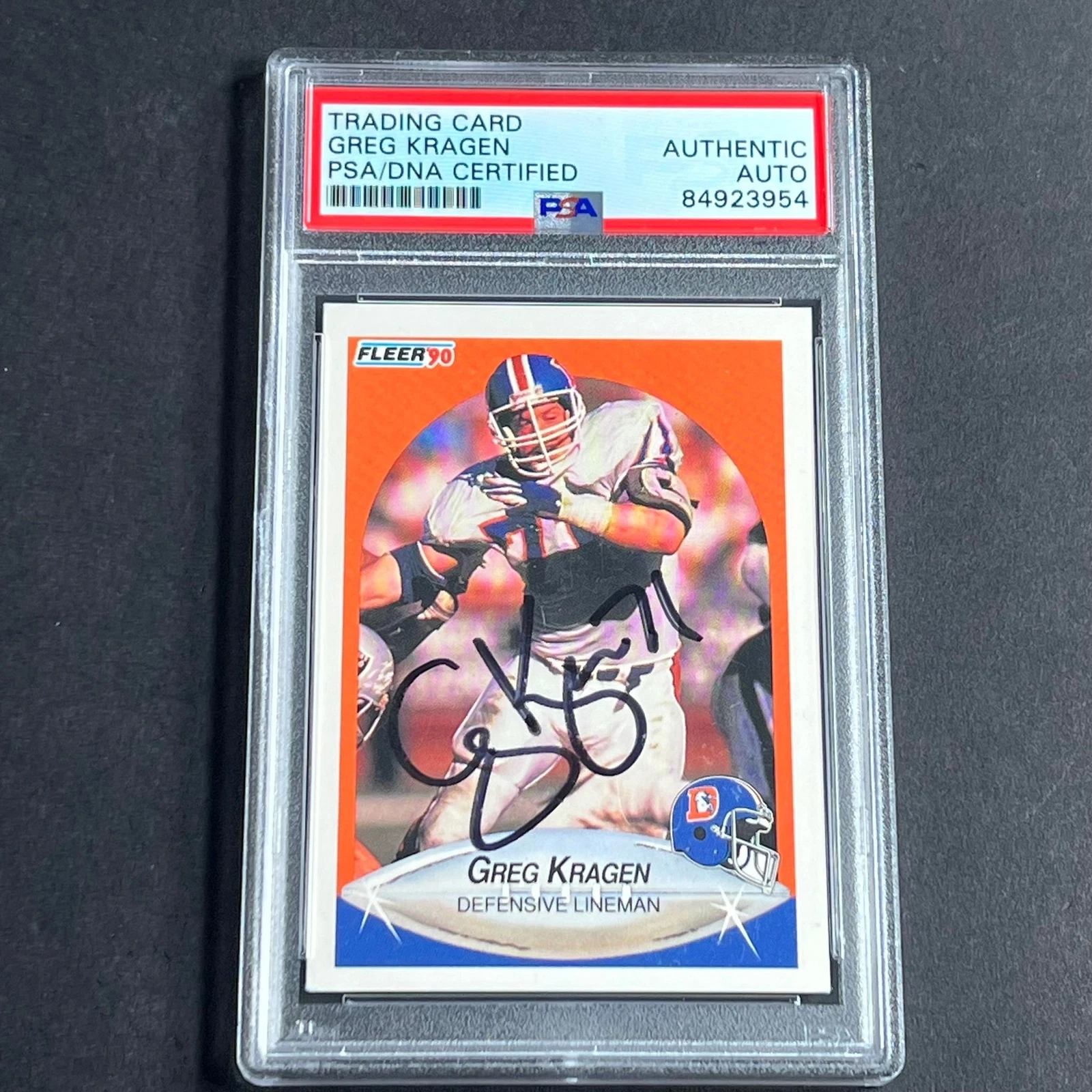 1990 FLEER #26 GREG KRAGEN SIGNED CARD AUTO PSA SLABBED BRONCOS COLLECTIBLE MEMORABILIA