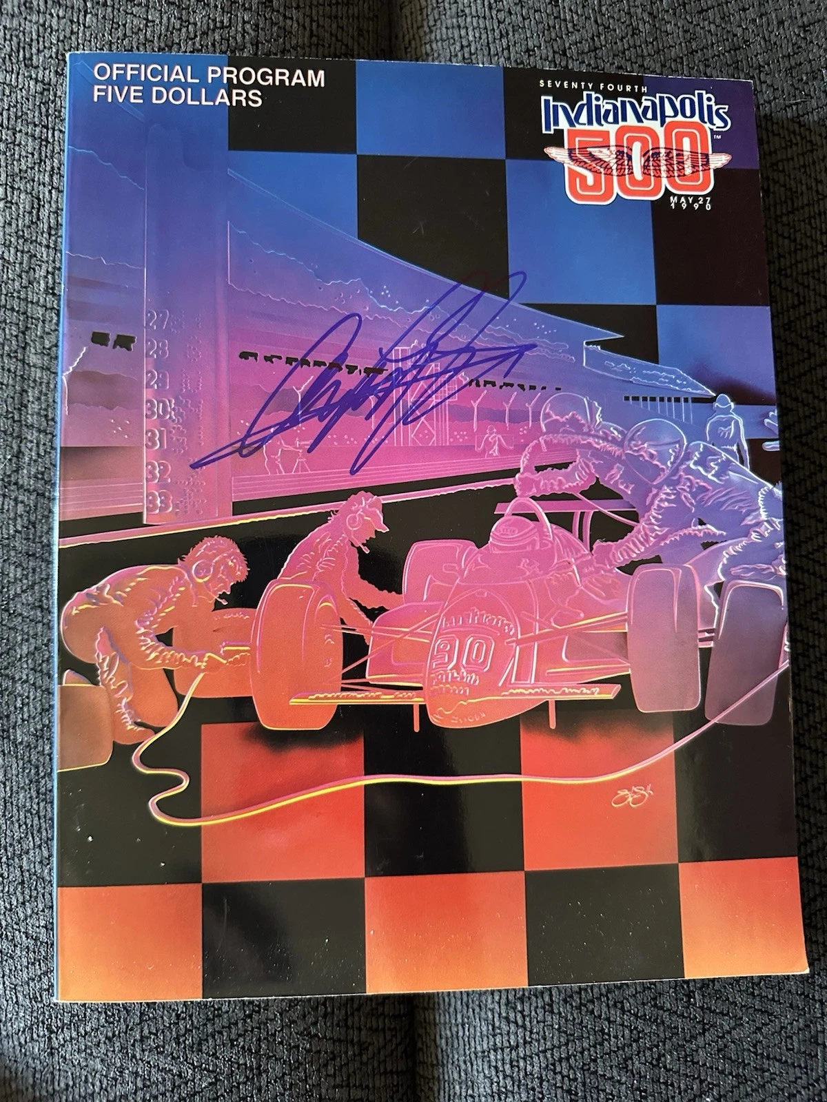 1990 INDY 500 PROGRAM SIGNED BY WINNER ARIE LUYENDYK AUTOGRAPHED INDIANAPOLIS COLLECTIBLE MEMORABILIA