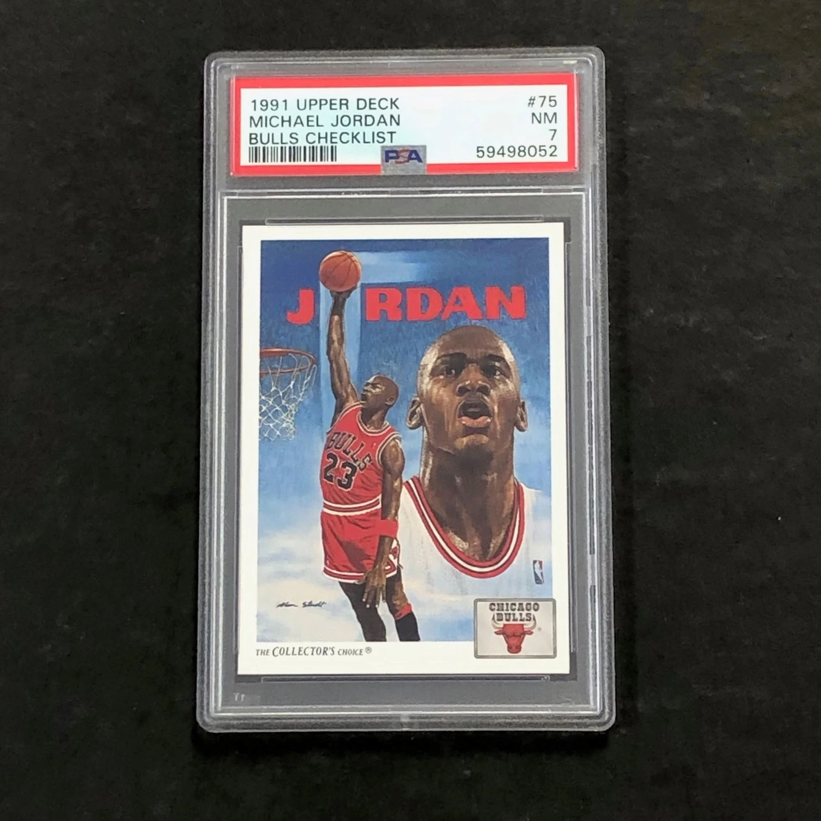 1991 UPPER DECK #75 MICHAEL JORDAN PSA 7 NM BULLS CHECKLIST COLLECTIBLE MEMORABILIA