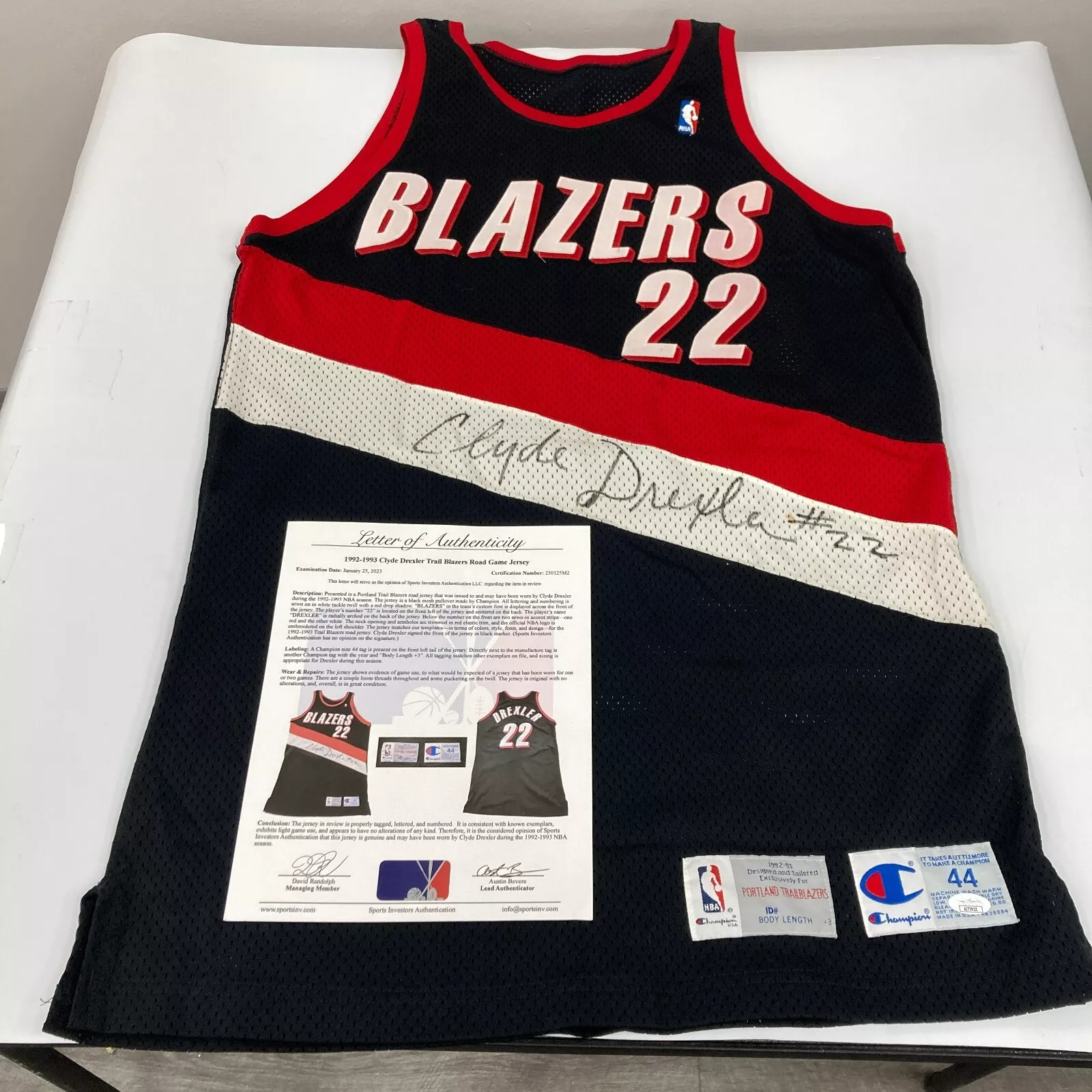 1992-93 CLYDE DREXLER SIGNED GAME USED PORTLAND TRAIL BLAZERS JERSEY JSA COA COLLECTIBLE MEMORABILIA
