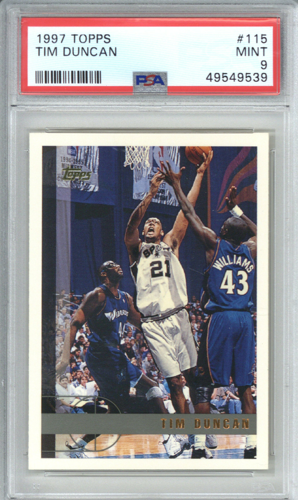 1997 TOPPS 115 TIM DUNCAN PSA 9 COLLECTIBLE MEMORABILIA