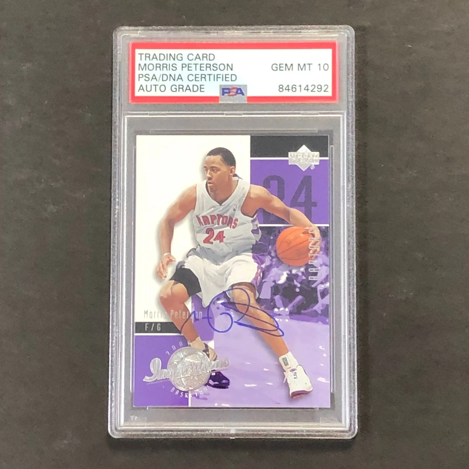 2003-04 UPPER DECK #83 MORRIS PETERSON SIGNED CARD AUTO 10 PSA SLABBED RAPTORS COLLECTIBLE MEMORABILIA