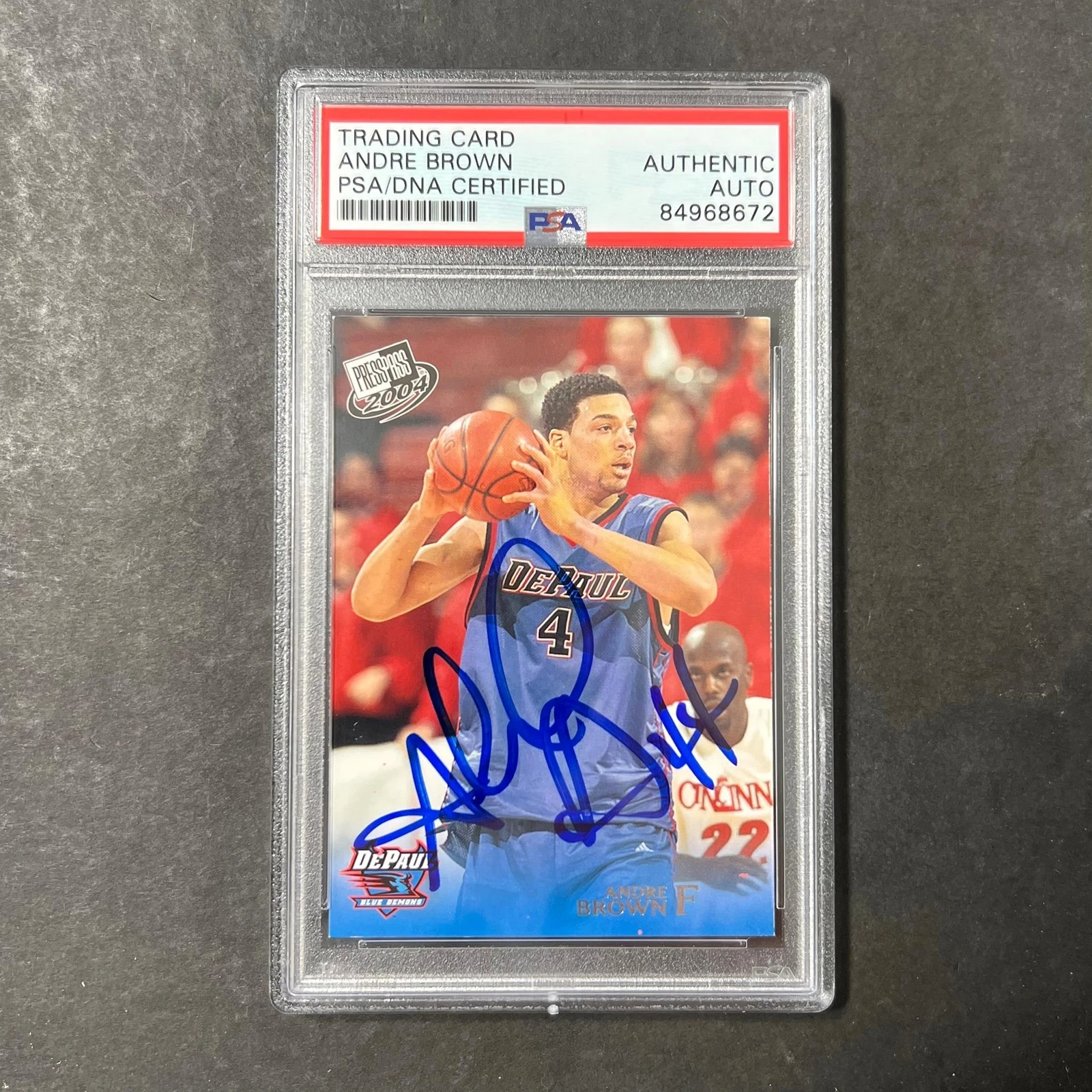 2004 PRESSPASS #4 ANDRE BROWN SIGNED CARD AUTO PSA SLABBED DEPAUL COLLECTIBLE MEMORABILIA