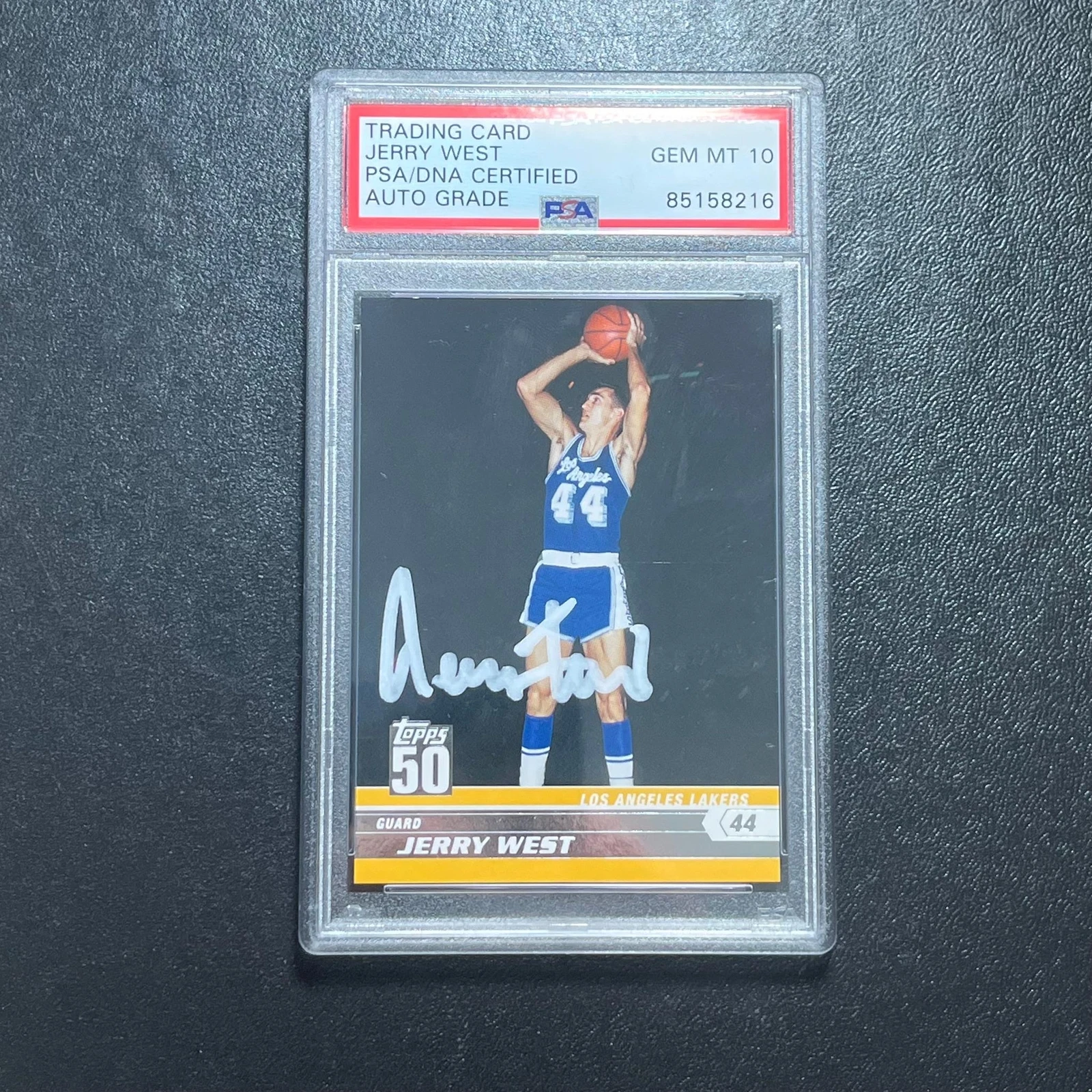 2008 TOPPS #48 JERRY WEST SIGNED CARD AUTO 10 PSA SLABBED LAKERS COLLECTIBLE MEMORABILIA