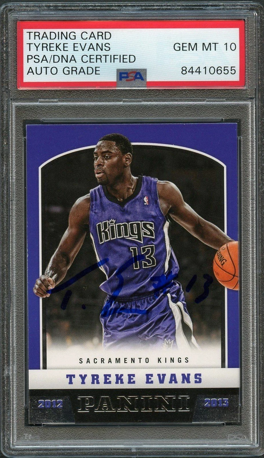 2012-13 PANINI BASKETBALL #168 TYREKE EVANS SIGNED CARD AUTO 10 PSA SLABBED KING COLLECTIBLE MEMORABILIA