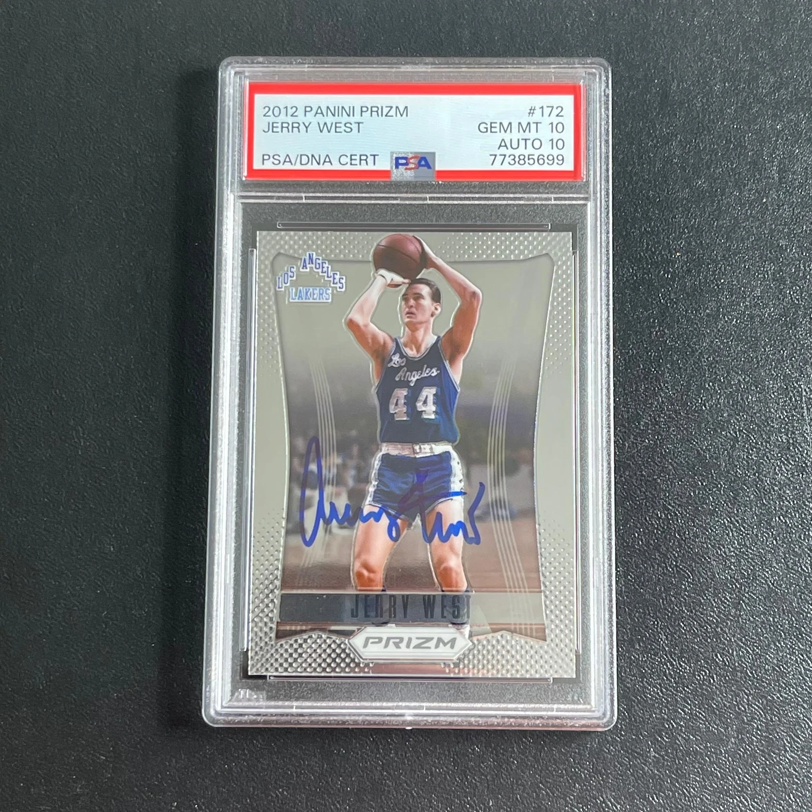 2012-13 PANINI PRIZM #172 JERRY WEST SIGNED CARD GEM MT 10 AUTO 10 PSA SLABBED L COLLECTIBLE MEMORABILIA