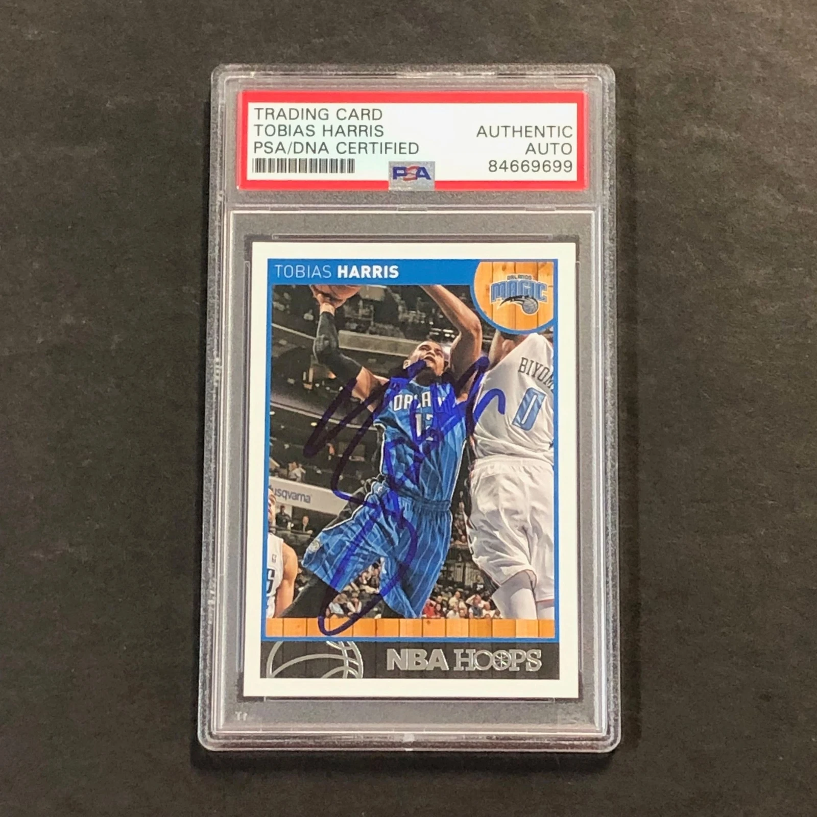 2013-14 NBA HOOPS #28 TOBIAS HARRIS SIGNED CARD PSA SLABBED MAGIC COLLECTIBLE MEMORABILIA