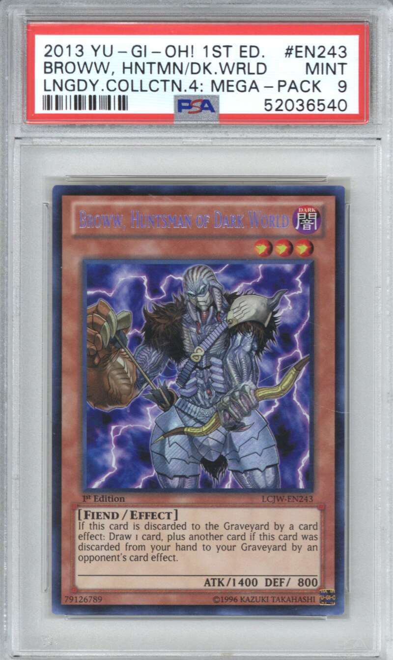 2013 YU-GI-OH! LCJW-EN243 BROWW HUNTSMAN OF DARK WORLD 1ST ED. PSA 9 COLLECTIBLE MEMORABILIA
