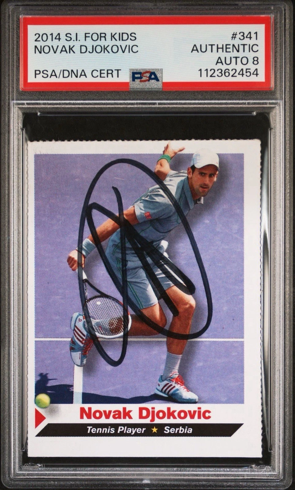 2014 SI FOR KIDS #341 NOVAK DJOKOVIC SIGNED TENNIS CARD PSA/DNA NM-MT 8 AUTO COLLECTIBLE MEMORABILIA