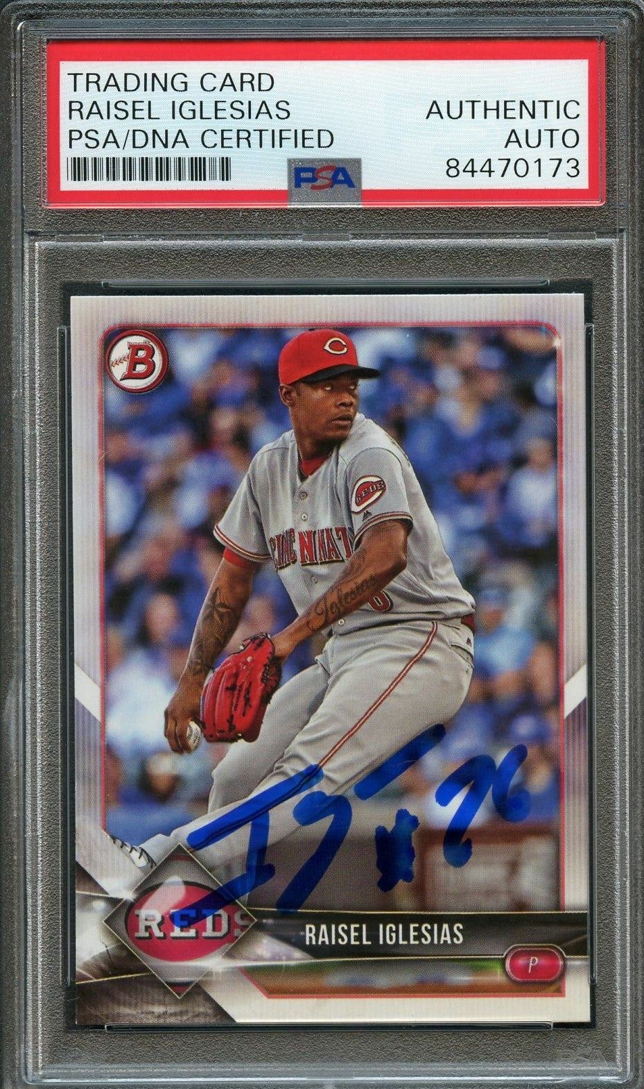 2018 BOWMAN #96 RAISEL IGLESIAS SIGNED CARD PSA SLABBED AUTO REDS COLLECTIBLE MEMORABILIA