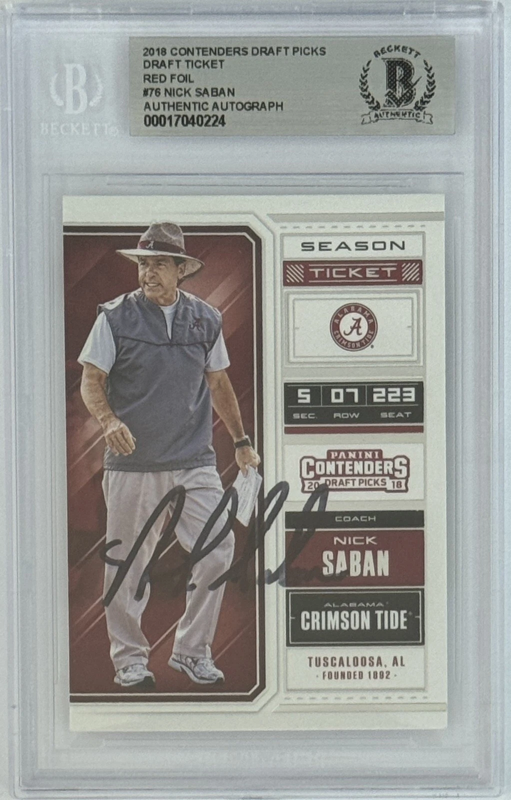 2018 PANINI CONTENDERS ALABAMA COACH NICK SABAN SIGNED BAS BECKETT COA AUTOGRAPH COLLECTIBLE MEMORABILIA