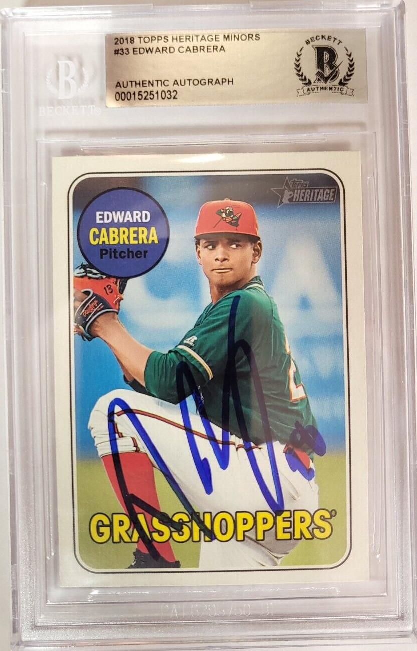 2018 TOPPS HERITAGE MINORS EDWARD CABRERA MARLINS #33 AUTO SIGNED CARD BECKETT COLLECTIBLE MEMORABILIA