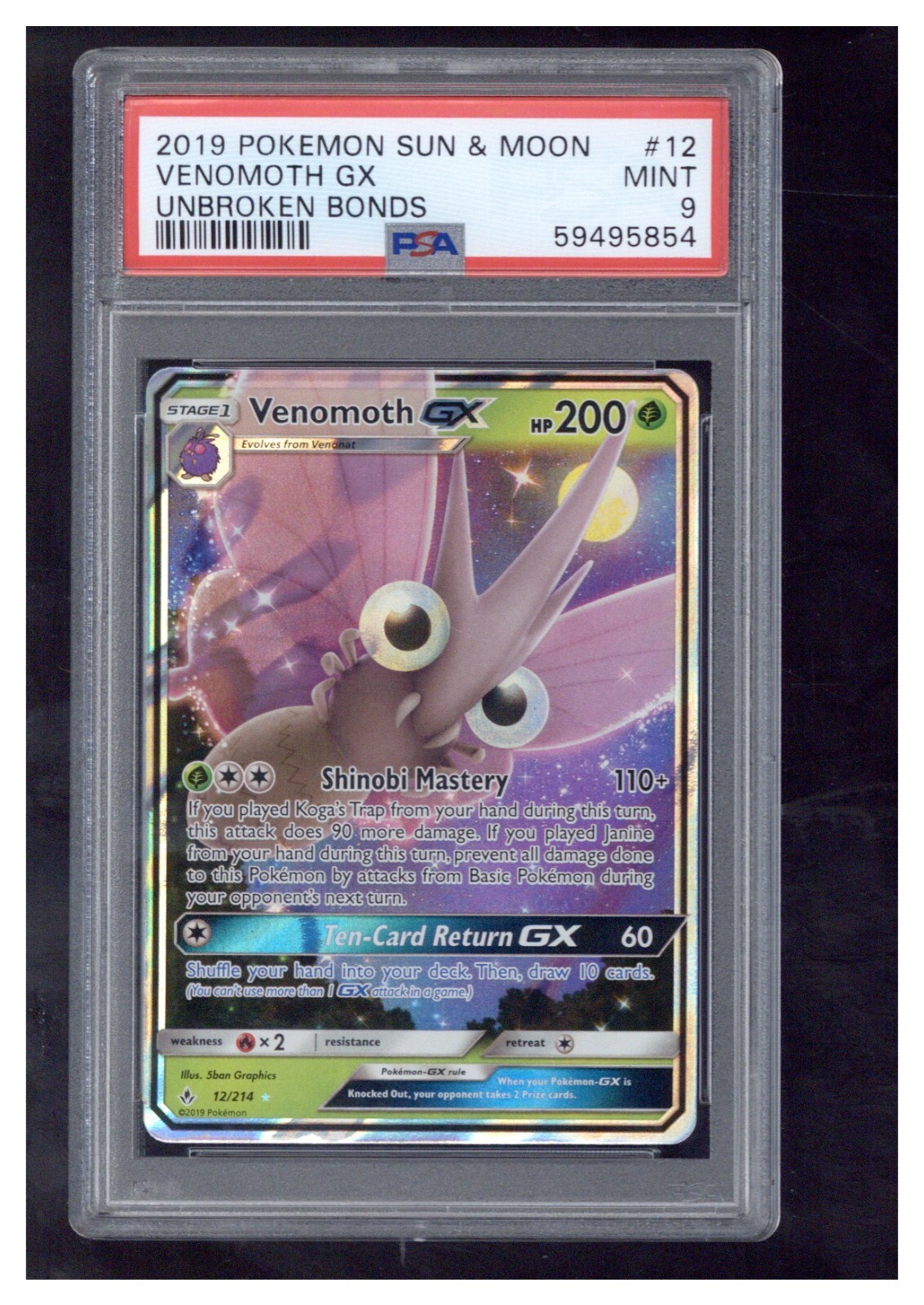 2019 POKEMON SUN & MOON UNBROKEN BONDS 12 VENOMOTH GX PSA 9 COLLECTIBLE MEMORABILIA