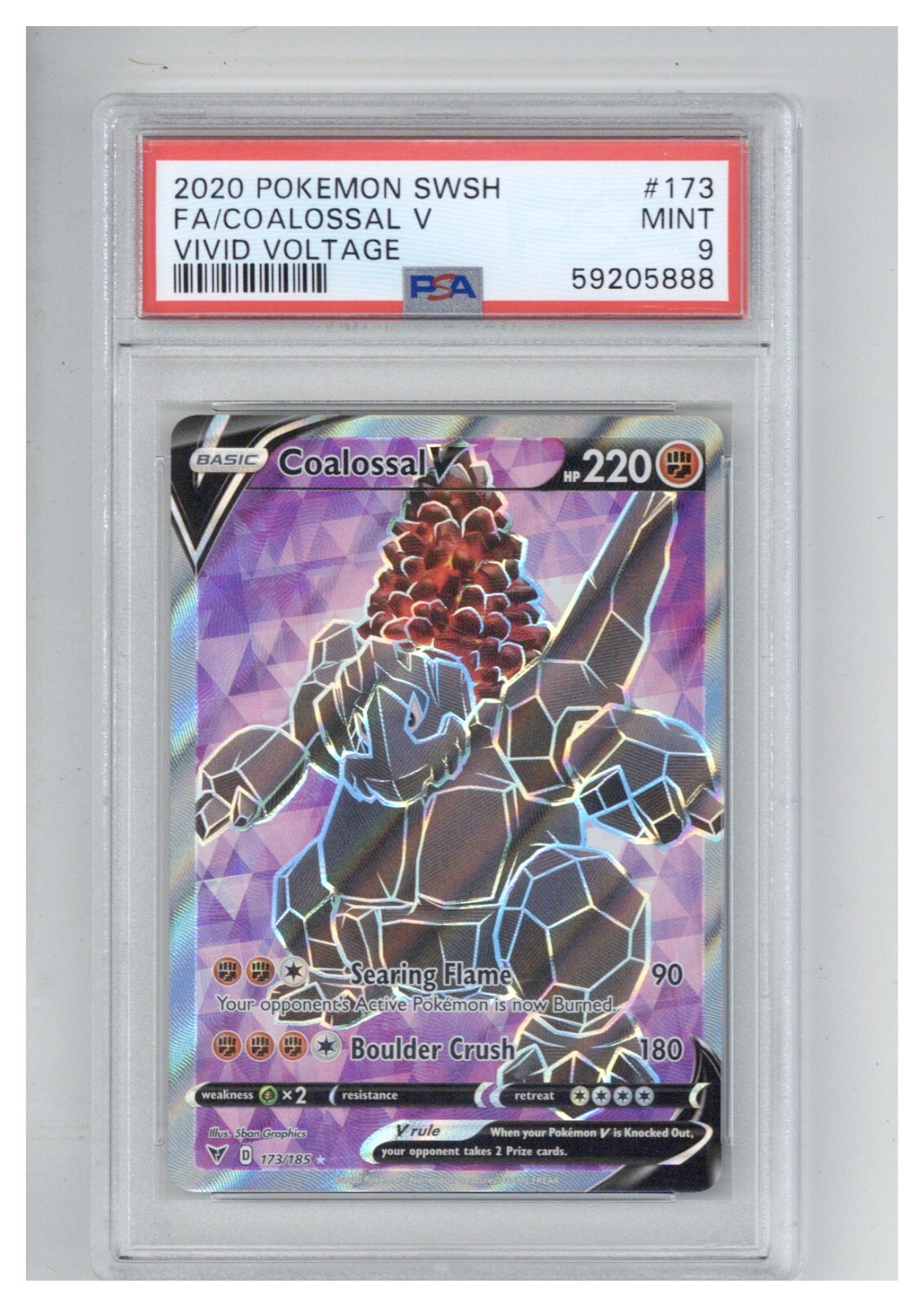 2020 POKEMON SWORD & SHIELD VIVID VOLTAGE 173 FULL ART/COALOSSAL V PSA 9 COLLECTIBLE MEMORABILIA