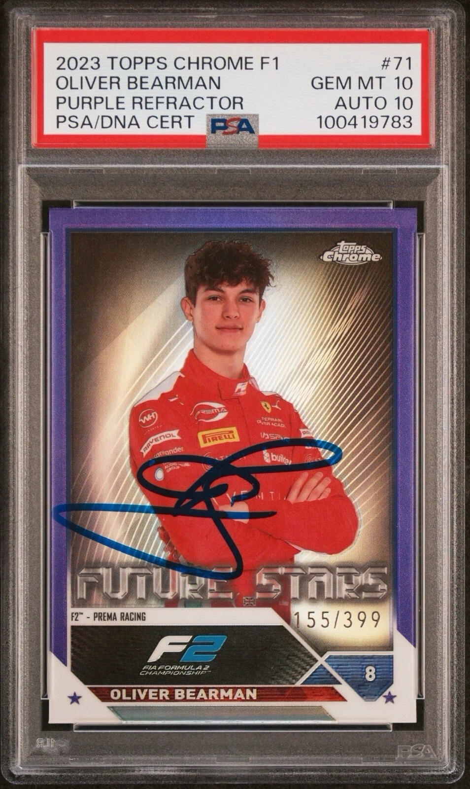 2023 TOPPS CHROME F1 #71 OLIVER BEARMAN PURPLE ROOKIE AUTO /399 PSA GEM MT 10/10 COLLECTIBLE MEMORABILIA