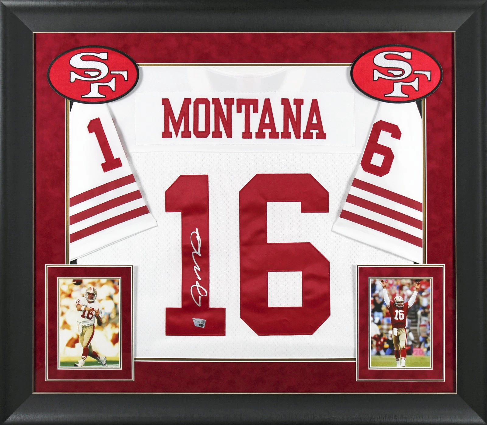 49ERS JOE MONTANA AUTHENTIC SIGNED WHITE MITCHELL & NESS FRAMED JERSEY FANATICS COLLECTIBLE MEMORABILIA