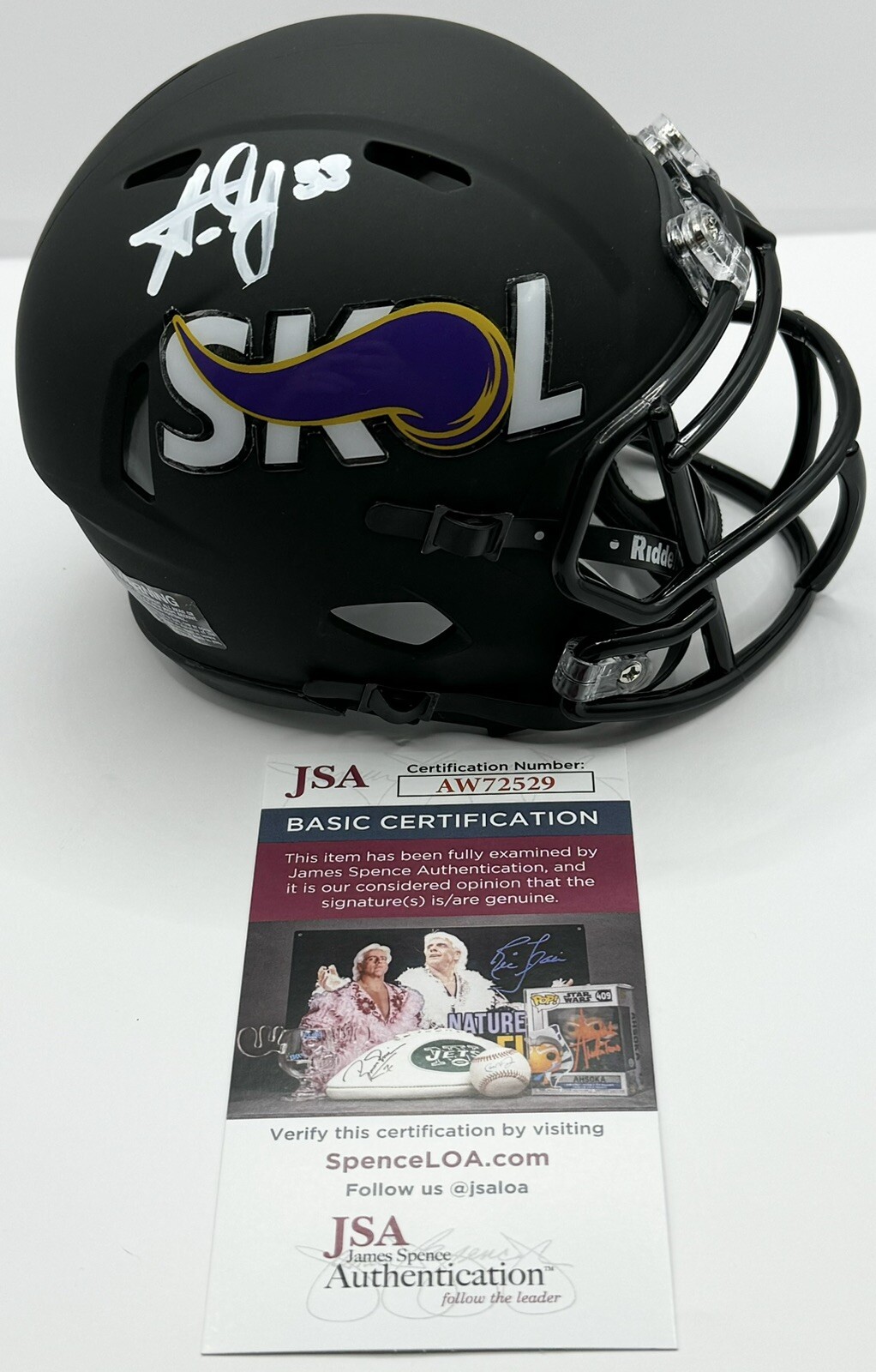 AARON JONES SIGNED AUTOGRAPHED MINNESOTA VIKINGS BLACK MINI HELMET JSA COA COLLECTIBLE MEMORABILIA
